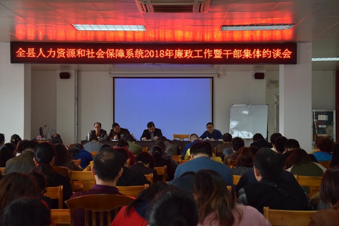 2018年3月5上午9点,富川县人社系统2018年廉政工作暨干部集体约谈会在人社局六楼召开,人社系统全体干部职工参加会议,人社局局长何羽、县纪委驻组织部纪检组长黄世才出席会议并作重要讲话。
